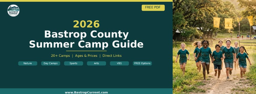 Our FREE 2026 Bastrop County Summer Camp Guide covers 20+ camps across Bastrop, Elgin, Smithville, and the surrounding area. Every listing includes ages, prices, dates, and direct sign-up links so you can compare and register without the runaround. Whether your kids are into outdoor adventures, art, sports, STEM, or faith-based programs - it’s all in there.